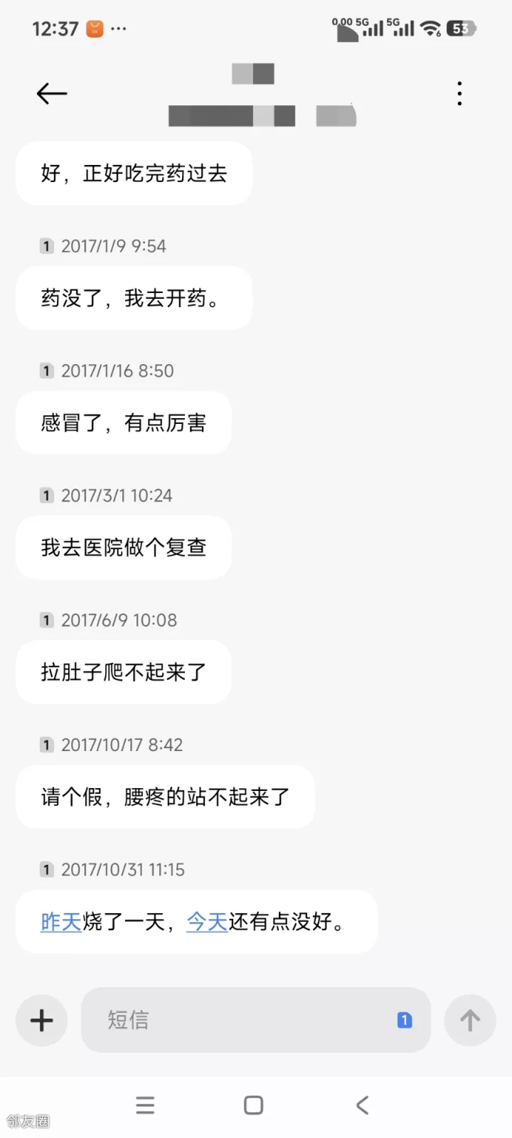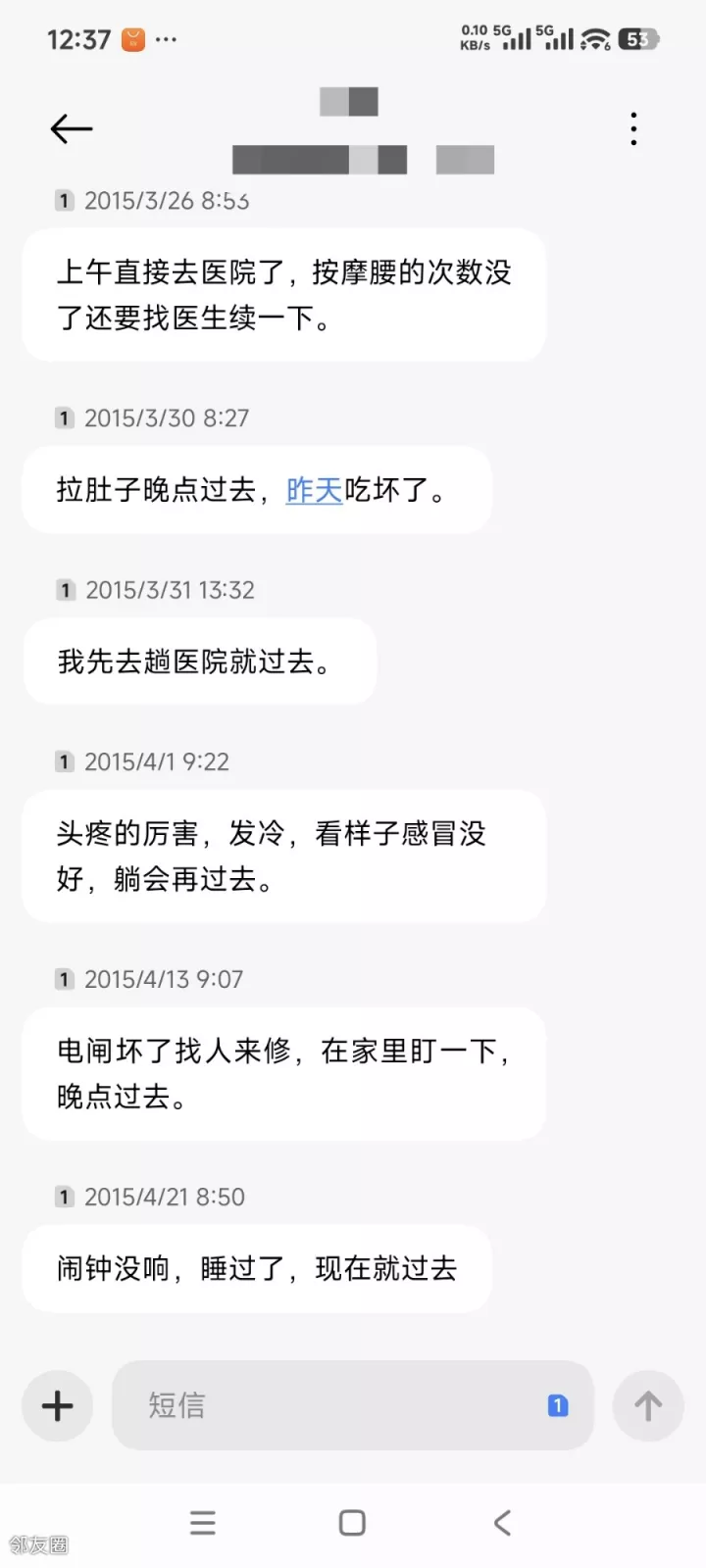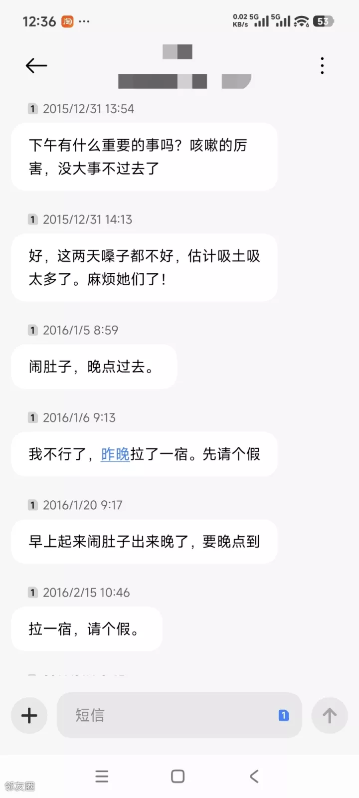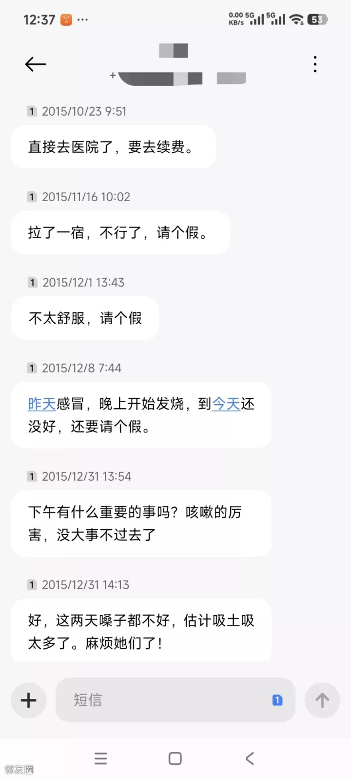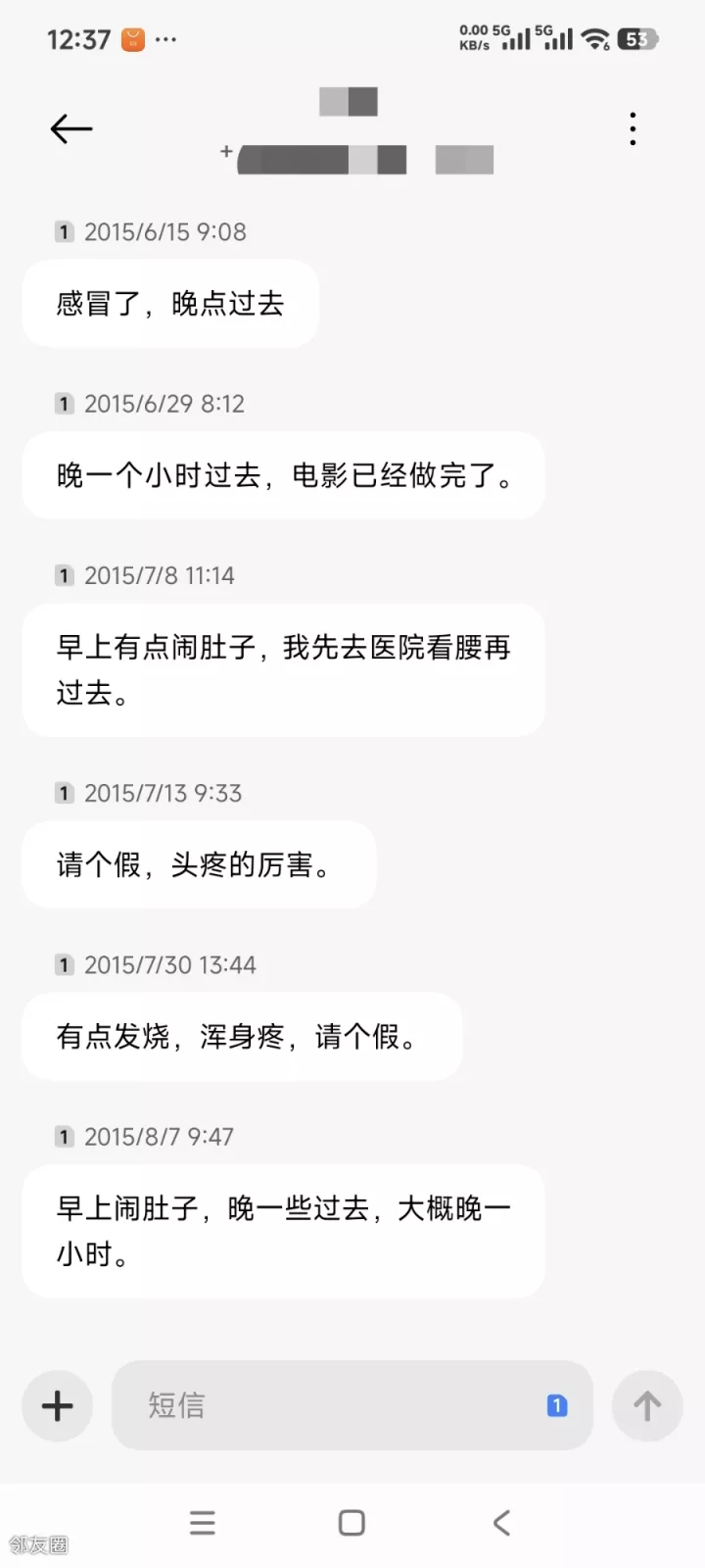 一个是每半小时就上楼道或楼下去吸烟或溜达十来分钟。。。他是我所有招聘里唯一一个没过试用期就辞退的; 另一个,五年没给他涨过薪资,看看我保存至今的请假短信(这还是其中一小部分)